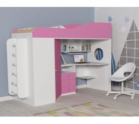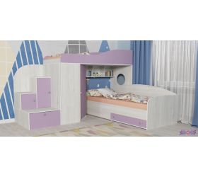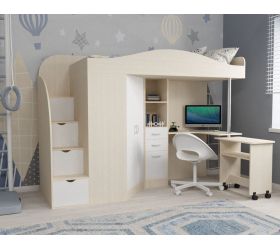 [name] => Кровать-чердак Кадет-2 угловая с металлической лестницей Белое дерево/Ирис
