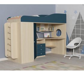 [name] => Кровать-чердак Кадет-1 с металлической лестницей Дуб молочный/Лазурь